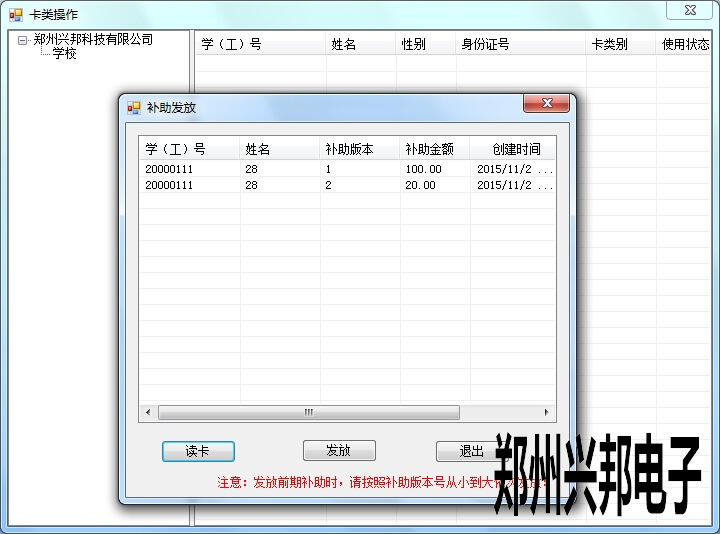 打開互聯(lián)網(wǎng)一卡通平臺,進(jìn)入制卡中心 -- 卡管理。然后鼠標(biāo)右鍵,選擇 發(fā)放前期補(bǔ)助。